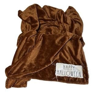 RAE DUNN Halloween Plush Throw Blanket Burnt Orange/ Rust Tone Farmhouse 62x48" Cottage Plush Cozy Cute Holiday