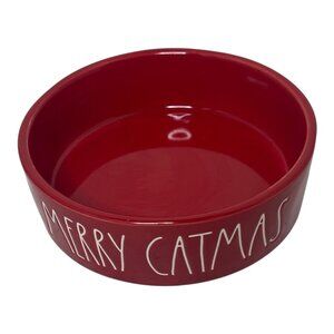 RAE DUNN Holiday Christmas MERRY CATMAS Red Cat Kitten Food Bowl 5 Inch