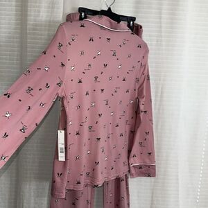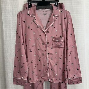 RAE DUNN. M-XL Pink Black Mini Dog Print Notched Collar Long Pants PJ Set