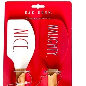 RAE DUNN NAUGHTY NICE 4 Pc Spatulas Cookie Cutters Holiday Christmas Baking Set