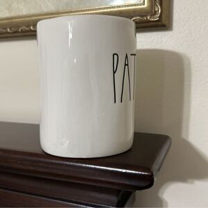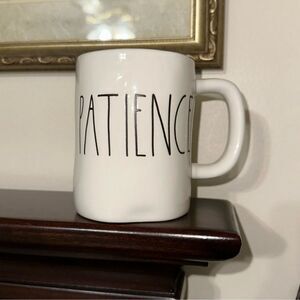 RAE DUNN. PATIENCE WHITE BLACK COFFE TEA HOT CHOCOLATE MUG