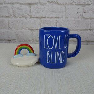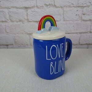 RAE DUNN Rainbow 🌈 Figural Mug Love Is Blind Blue With Lid Pride Decor New