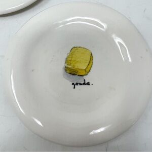 RAE DUNN Set Of 2 Two Round Cheese Plates Gouda & Goat 6” Round Ivory Shiny. Excellent pre-owned condition. Gentle signs of wear. No stains, scratches or crazing. All measurements are approximate.