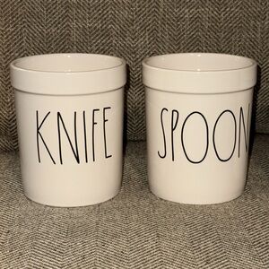 RAE DUNN Set of Three White Utensil Holders FORK SPOON KNIFE