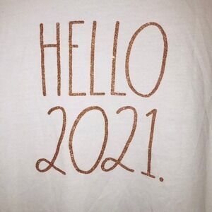 RAE DUNN Womens "Hello 2021" XL white t-shirt Short Sleeve Shirt