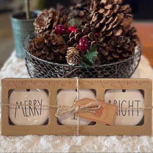RAE DUNN by Magenta "MERRY, 🎄, BRIGHT” Christmas Ornament Set of 3