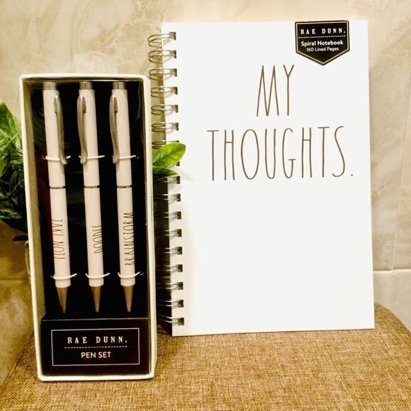 Rae Dunn Pen set: “Take Note’, ‘Doodle’, ‘Brainstorm’ and ‘Thoughts’ Notebook.