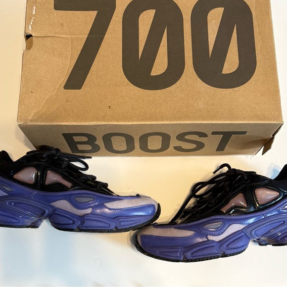 Raf Simons Ozweego adidas sneakers featuring a sleek purple and black design. Sz 8.5, no OG box, no insoles
