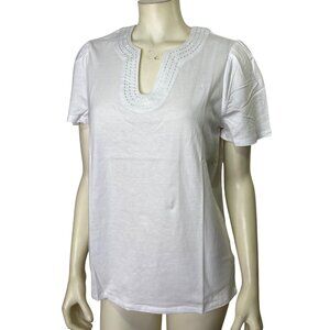 RAFAELLA $59 LADIES V-NECK KNIT SHORT SLEEVE TOP MD NEW WITH TAG