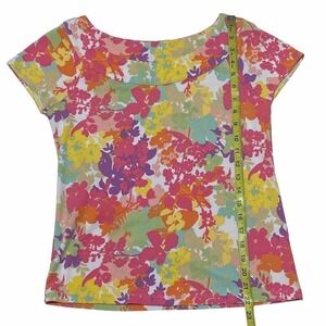 Rafaella Allover Multicolored Floral Print Short Sleeve T-Shirt Blouse Women's Size Medium