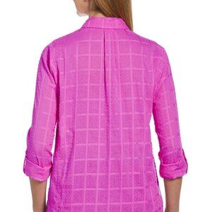 RAFAELLA Audree Window Print Dobby Long Sleeve Button-Down Tunic Top Fuchsia L
