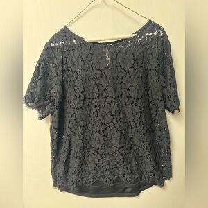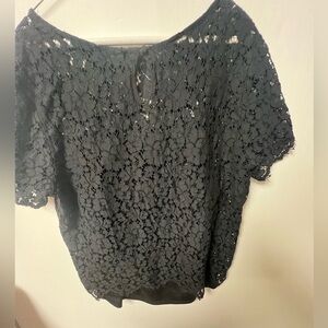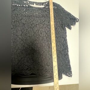 RAFAELLA BLACK FLORAL LACE LAYERED TOP WITH SCOOP NECK SIZE XL SHORT SLEEVES