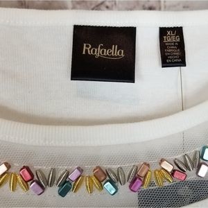 Get all prettied up with these versatile Rafaella Embellished Knit tops WHITE. Multicolor beads sewn over mesh which surrounds the neckline. Various colors/sizes available in my other listings including black, white, coral and bright aqua.