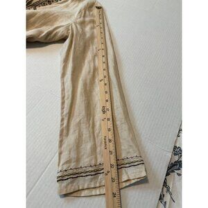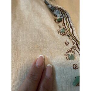RAFAELLA Beige Embroidered Beaded Blouse100% Linen V-Neck Tiny Flaw Size 14