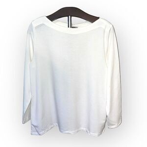 The Rafaella Boatneck Top is a perfect top as you transition into Spring. The fabric is an ultra soft polyester cotton elastane french terry which makes this a very versatile top. The fabric is drapey and is not your typical athletic french terry sweatshirt. It can be paired with pants for a more polished look and it can be paired with jeans for a more casual look. The boatneck is finished with a band at the front and back neckline. This top is the perfect length. It hits at the low hip which prevents any skin from showing while moving about