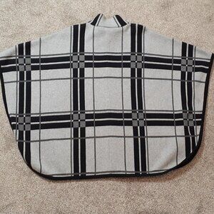 RAFAELLA Gray Plaid Zippered Heavy Sweater Poncho; Faux Leather Closure; Size M