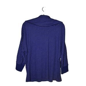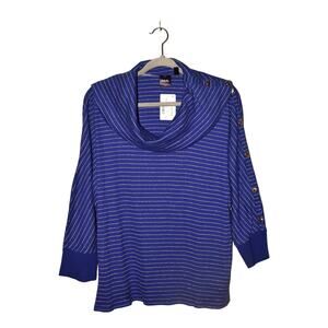 RAFAELLA NEW $55 Blue Gold Stripe Cowl Neck 3/4 Sleeve Top Button Accents 1X
