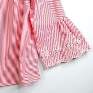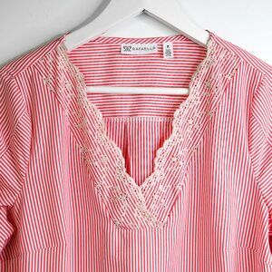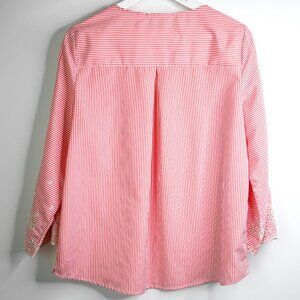 RAFAELLA Pink White Striped V Neck Embroidered 3/4 Sleeves Pull On Top -Size Med