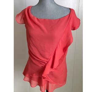 Pretty RAFAELLA coral color sheer lined top. Not only do I love this pop of color, it’s just so feminine! Excellent condition