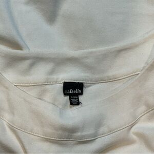 Cute white pullover by Rafaella has scoop neck in front and back with cap sleeves, great career wear addition. Very gently worn.