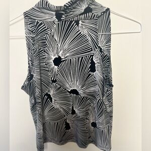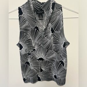 RAFAELLA SLEEVELESS BLACK AND WHITE SMALL PETITE V NECK BLOUSE