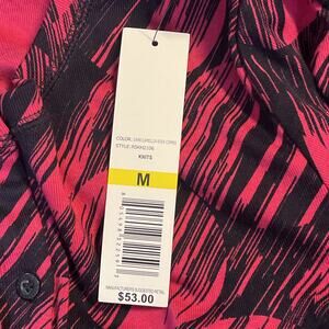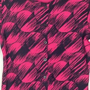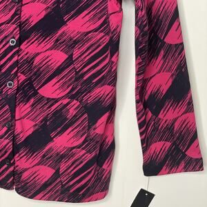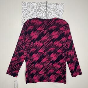 RAFAELLA Women's MEDIUM Sweater Button Front 3/4 Sleeves BLACK Dark PINK NWT