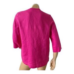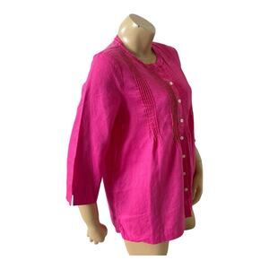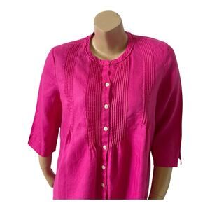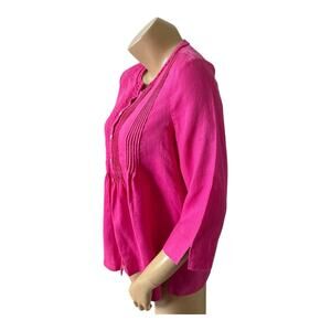 RAFAELLA Womens Petite Size PM Pink Pleated 3/4 Sleeve Linen Button Front Shirt