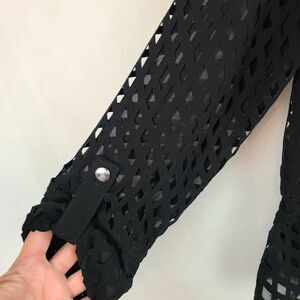 RAFAELLA Women's (S) Black Semi-Sheer Diamond Cut Out 3/4 Sleeve Full Zip Jacket