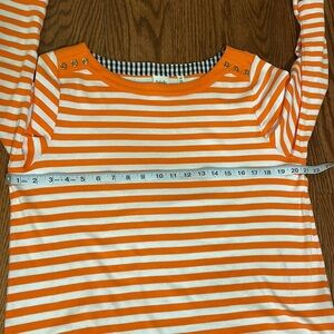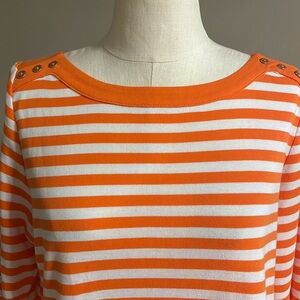 RAFAELLA weekend woman’s orange white striped top 100% cotton boat neck size L