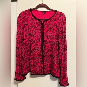 This a Rafaella black and red, open front cardigan or topper… one top closure…