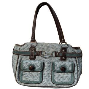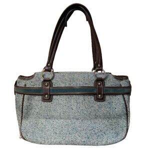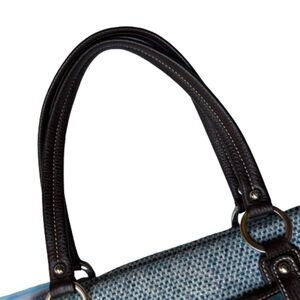 RAFE New York Blue & Brown Leather Tweed Satchel Bag