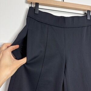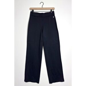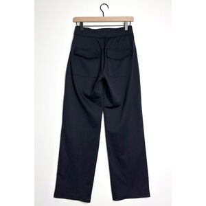 - Keywords: elastic waist, high rise, straight leg, pull-on, front and back pockets, stretch, black, workwear, casual