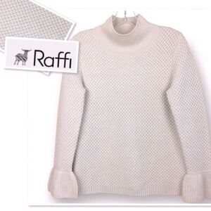 RAFFI Merino Wool Chunky Knit Bell Sleeve Mock Neck Sweater Pullover Jumper XS