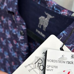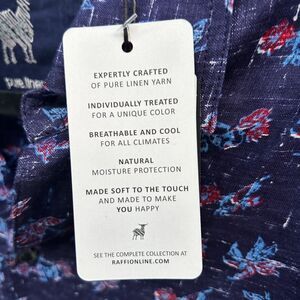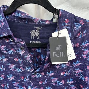 RAFFI Pure 100% Linen Men's Dress Shirt Medium Floral Blue Longsleeve Button NEW