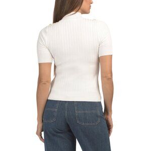 RAFIANA Ivory Gold Ribbed Short Sleeve Turtleneck Sweater