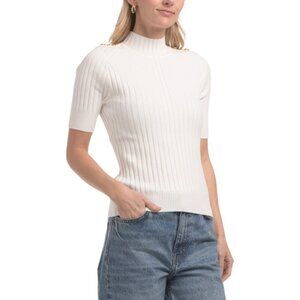 RAFIANA Ribbed Short Sleeve Turtleneck Sweater