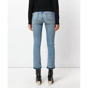 Complete with soft fading and ripped knees, this rag & bone/JEAN style is all about that lived-in look. This light washed denim pair is cropped at the ankle with a slight kick flare and a frayed release step hem.