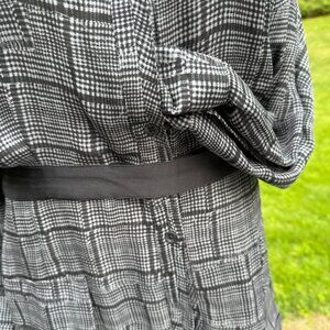 TAGS: Boho, Streetwear, Street, Shirtdress, Fit and Flare, Casual, Work, Silk, Natural Fiber, Plaid, Pattern, Gray, Black, Boots, Layer, Style, Spring, Fall, Winter, Business Casual, Travel, Whimsygoth