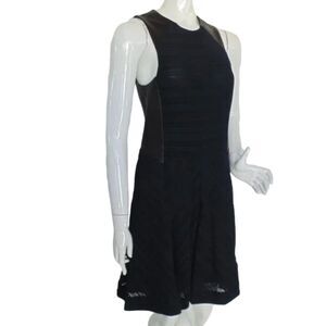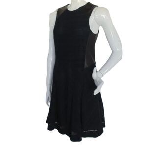 RAG & BONE Basha Dress, 8, Black Leather Trim, Navy Semi-sheer, Fit & Flare