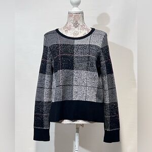 Black and gray TEGAN plaid merino wool sweater from RAG & BONE, size M. Top has crew neckline.