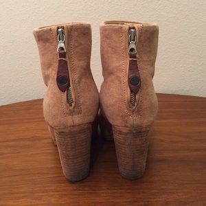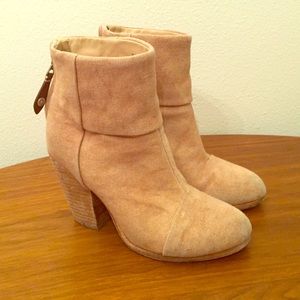 -Nude canvas Rag & Bone Newburry round-toe booties with covered heels and zip closure at counters