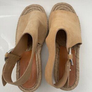 RAG & BONE Calla Dune Tan Suede Buckle Wedge Sandals Sz 37 / US 7-7.5