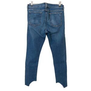 Medium wash (hampton) skinny capri denim. Asymmetric raw hem. Cotton, polyurethane blend. Great preloved condition! Size 29