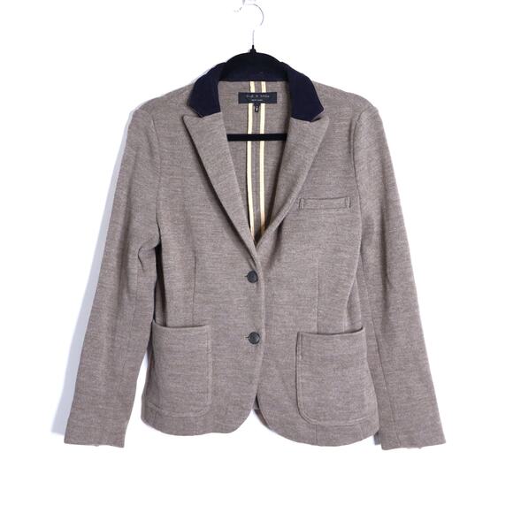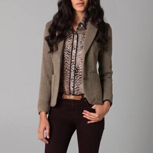 RAG & BONE Fitted Wool Strand Jacket Taupe Elbow Patch Women's M