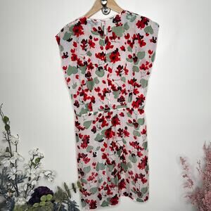 Soft silk blend slim fit dress in a flocked floral print. Pretty perfect.