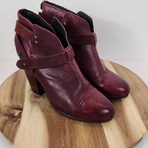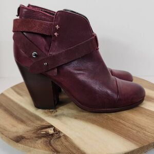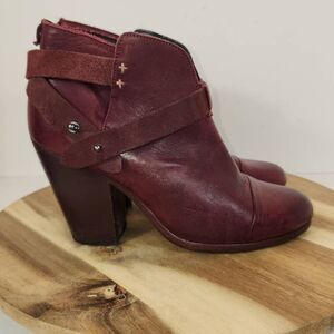 RAG & BONE Harrow burgundy red leather stud harness block heel ankle boots 8 US / 38 EU