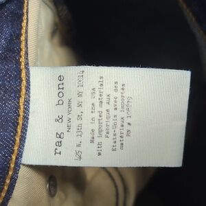 These rag & bone skinny jeans in a rich blue hue offer a sleek silhouette with subtle distressing for a modern, lived-in look. The premium denim features a gradient wash, enhancing the deep navy color with natural fading for a stylish edge. Perfect for adding a touch of sophistication to any casual ensemble.