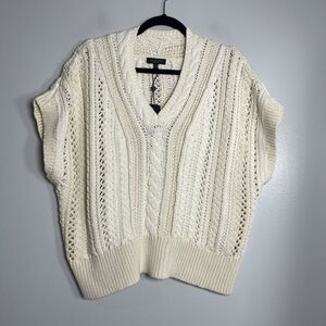 RAG & BONE Jolie Sleeveless Vee Cable Sweater Large Ivory NEW Chunky Knit Fall