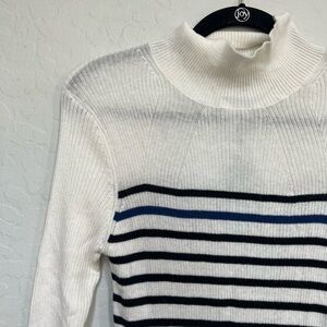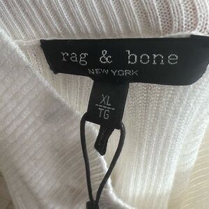 RAG & BONE Kate Stripe T-Neck Dress size Xlarge. New with tag. Keep things clean, feminine and classic with this striped dress. Available in an ivory tone, this dress has a ribbed design with a turtleneck so you stay warm and toasty in a luxurious cashmere blend. It looks great peeking out from long coats and styles beautifully with tall, black knee-high boots.