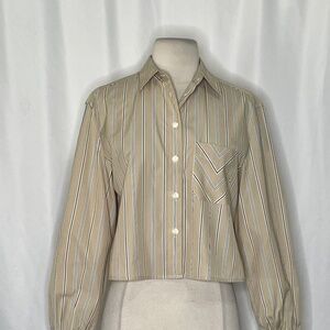 RAG & BONE Maxine Cropped Shirt Top Khaki Multi Stripe Buttondown X-Small